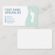 A professional business card for a foot care service featuring clean, medical-inspired typography, and a stylized foot silhouette appears in soft teal on right side. Perfect for podiatrist, pedicure, reflexology, massage, etc.