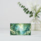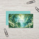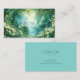 Define your brand with lush natural beauty and the magical tranquility of a hidden grove using this captivating business card. The design centers on a spectacular vibrant green forest, where towering pine trees and ancient oaks form a natural archway. Soft, ethereal sunbeams filter through the canopy, illuminating the mist and a delicate, cascading waterfall in the background. The foreground is lavishly filled with abundant creamy white and pale yellow roses and wildflowers, creating a romantic, luminous border. This artwork merges rich, magical realism with vibrant natural detail, conveying a sense of serenity, renewal, and high-end elegance that makes your card truly unforgettable. This business card is ideally suited for a luxury spa or wellness center promoting tranquility and renewal, a high-end event stylist specializing in garden or fairytale-themed celebrations, or a boutique hotelier wanting to convey a magical, serene setting. It would also perfectly suit a fine art print seller focused on mystical landscapes, or a modern landscape architect whose focus is on artistic, abundant garden design. The card's captivating combination of enchanted scenery and abundant white florals ensures it is versatile for any sophisticated announcement, a refined gift enclosure, or an elegant invitation.