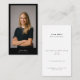 Haga una primera impresión memorable con una tarjeta profesional de negocios de imagen completa que enmarca el retrato en un elegante borde negro en el frente y presenta elementos esenciales en un diseño limpio y mínimo en la parte posterior. El fuerte contraste y la limitada tipografía crean una clara jerarquía visual, por lo que el nombre, el título, la ubicación, el teléfono, el correo electrónico y el sitio web son fáciles de escanear en entrevistas, reuniones y casas abiertas. El enlace QR opcional a una cartera, listados o página de reserva puede agilizar el seguimiento, y todo el texto, las fuentes y los colores se pueden editar para que coincidan con el estilo de la marca. El buen contraste, los tamaños de tipo legibles y el espaciado equilibrado garantizan la legibilidad en la impresión.
