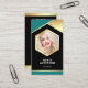 Añada su foto para crear su propia tarjeta de visita con un diseño geométrico moderno con elementos de Relieve metalizado de oro falsos. Personalízalo con tu nombre, foto y datos de contacto para hacer una primera impresión duradera.