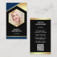 Añada su foto para crear su propia tarjeta de visita con un diseño geométrico moderno con elementos de Relieve metalizado de oro falsos. Personalízalo con tu nombre, foto y datos de contacto para hacer una primera impresión duradera.