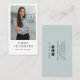Esta tarjeta de visita incluye una moderna tarjeta de visita notarial de fotografía profesional. Puede personalizar el tamaño del texto, el tipo de letra, para que se ajuste a su propio estilo personal. Reemplace esta foto del titular del lugar de ejemplo con su propia tarjeta de visita orientada al retrato. Un fondo azul polvoriento en la parte delantera y trasera de la tarjeta.