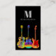Tarjeta de negocios con plantilla de fotos para los modernos profesores de guitarra. Coloridos ilustraciones psicodélicos de guitarra sobre un fondo negro con monograma personalizado, nombre, detalles y plantilla de foto. El perfecto diseño de tarjetas de visita para guitarristas, músicos profesionales, artistas, compositores y profesores de música. Pintura original de la artista Catherine Sweetman
