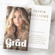 Tarjeta de perfil de red de fotos con el texto "grad" en un tipo de letra retro y negrita en el frente. Añade tu nombre, año, colegio y foto. Puede cambiar el color de fondo, las fuentes y los colores de fuente, mover y cambiar el tamaño de los elementos con la herramienta de diseño.