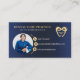 Tarjeta de cita profesional moderna, profesional y elegante para la fotografía dentista. El diseño presenta el logo de un diente de oro en un fondo marino, foto, detalles de contacto, nombre de la clínica y nombre del Dentista. Personalice más con detalles del recordatorio de cita y dirección en la parte posterior.