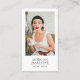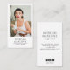 Una moderna tarjeta profesional de fotografía con una elegante tipografía serif, una elegante foto y medios sociales. Adecuado para la mayoría de profesiones como: fotógrafa, inmobiliaria, consultora, maquilladora, planificadora de eventos, y más.