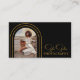 Elegante y moderno guión de fotografía con código QR Fotografía de fotografía Las tarjetas de visita de la fotógrafa de negocios presentan un elegante y elegante guión dorado con su foto favorita dentro de arcos dorados, con sus detalles de negocio y el personalizado del sitio web de negocios código QR al revés. Al contrario, sus datos de contacto personalizados. Diseñado por © Evco Studio www.zazzle.com/store/evcostudio