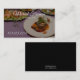 Una tarjeta de visita personal del chef con una foto de un plato, con información de negocios de personalizable.