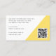 Tarjetas de visita de moda, amarillas y blancas, con tu foto al frente junto con el nombre, el título y un lema personalizado u otro texto. Agregue su información de contacto y otra información al reverso y personalizar el código QR. Los colores de fondo y fuente se pueden personalizar en la herramienta de diseño.