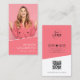 Fotografía simple Rosa Moderna Media Social QR Código Su Tarjeta De Negocio Con Logo. ¡Una simple tarjeta de visita minimalista para los creadores de contenido, los influyentes en los medios sociales, los gerentes de marketing y más! Incluso se podría usar para empresas o pequeñas empresas. Ahora mismo está pintado de rosa, negro y blanco, pero puedes cambiar los colores a lo que quieras. La tipografía minimalista moderna es profesional y elegante. Su logotipo y la información de contacto en la parte posterior (puede ocultar los iconos sociales si lo desea. Un código QR para facilitar a los clientes la lectura de más información o precios si lo desea. Cambia la foto a la tuya.