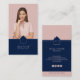 Un sencillo diseño moderno monograma femenino con una silueta de foto y casa, con un tipo de letra de escritura informal y un tipo de letra de bloque moderno en el fondo rosa pastel. Puede añadir el logotipo de su corredor en la parte posterior. Diseño elegante y de moda para su negocio inmobiliario, de seguros o hipotecario
