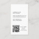 Tarjeta de visita minimalista y elegante con texto superpuesto en la foto de su personalizado y código qr en la parte posterior.
