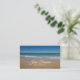 Una playa tranquila con una suave brisa, con información de negocios personalizado en la tarjeta.