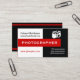 Tarjeta De Visita Fotógrafo negro, blanco, rojo llamativo