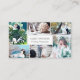 Tarjeta de visita plana para un fotógrafo profesional, donde puede mostrar su trabajo en un collage de fotos con espacio para seis de sus fotos. Añade tu nombre y especialidad o título o servicio en la portada. Añade tu información de contacto en la parte posterior, decorada con falsos objetos de oro. Una elegante tarjeta de visita minimalista, perfecta para un fotógrafo boda.