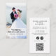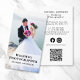 Haga una impresión duradera con esta moderna tarjeta de visita para bodas y otros fotógrafos profesionales, que incluye una foto de su portafolio con su nombre y título en una mezcla de tipografía audaz simple y contemporánea. En la parte posterior, agregue sus datos de contacto y el nombre de usuario de los medios sociales, y escriba una dirección url para crear un código QR que los clientes puedan explorar para conectarse a su sitio web, portafolio, perfil de medios sociales o cualquier otra plataforma que muestre su trabajo.
