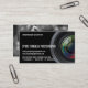 Mostrar las herramientas del comercio con la tarjeta de visita de este fotógrafo. Se recorta una lente de cámara en el lado derecho de la tarjeta de visita con información de contacto a la izquierda. Añade tu propia fotografía al revés para resaltar tus talentos. Disponible con productos coincidentes. com.