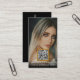 Las tarjetas de visita de artista de maquillaje con una mujer hermosa en el fondo, junto con un sencillo diseño de texto que se puede personalizar. Perfecto para cualquier tipo de tarjeta de visita relacionada con la belleza, el cosmetólogo, los cosméticos o el salón de belleza o de belleza.