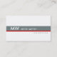 Tarjeta De Visita franja masculina gris y roja monogramada en blanco