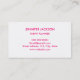 Tarjeta de visita moderna fresca minimalista rosada intrépida. Debido al diseño simple y fresco esta tarjeta de visita será perfecta para muchas profesiones y negocios, pero el color hace más apropiado para las profesiones creativas tales como planificador de eventos, diseñador, artista de maquillaje, estilista, músico/DJ, interiorista etc y mucho más. Las miradas de esta tarjeta de visita muy profesionales para las mujeres en profesiones creativas y con su diseño simple e intrépido esta tarjeta serán llamativas y prestarán a su negocio atención que merece.
