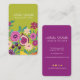 El diseño presenta nuestros hermosos cítricos tropicales florecientes con limones vibrantes, granadas y naranjas mezclados en nuestros florales botánicos en un follaje amarillo vivo, rosa, violeta profundo y verde. El jardín floral de cítricos botánicos se extiende hacia arriba para crear un floreciente jardín floral, personalizado con nombre. El lado inverso incluye la información de contacto, los iconos de los medios sociales y el nombre del identificador. Todos los ilustraciones son obras de arte originales hechas a mano por Moodthology.