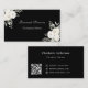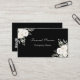 Un fondo negro clásico, rosas blancas, flores como decoración. Personalice y agregue su negocio, nombre de la empresa y un texto al frente. Letras blancas Atrás: Plantillas para su nombre, título, número de teléfono, correo y dirección del sitio web. Agregue su propio código QR a su sitio web.