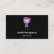 Tarjeta de visita con un lindo ilustracion. Monstruo Frankenstein con pelo rosado y púrpura y traje y corbata de dapper.
