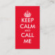 Funny personalizado Keep Calm business card. Tarjeta de visita profesional de color rojo o personalizado. Tipografía moderna con corona. Mantente tranquilo y llámame. Excelente para cualquier tipo de empresa o persona por cuenta propia. Enumera tus servicios o operaciones en la parte posterior. Haga sonreír a sus clientes con una tarjeta de oficina divertida.