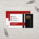 Un diseño simple centrado en columnas rectangulares. En rojo la columna sienta su nombre y cargo. Directamente arriba, hay un rectángulo rojo vertical fino que acompaña sus botones sociales del icono para sus detalles de la tarjeta. En la pared derecha, hay un rectángulo negro grande que tiene el logotipo y su nombre comercial invertido al lado del lado. A la vuelta, la tarjeta tiene dos porciones. El pedazo rojo superior tiene el logotipo y el nombre comercial. La columna blanca directamente por debajo tiene los detalles del negocio junto con su opción del tagline del lema. Si usted decide cargar una foto en vez de un logotipo, las dimensiones son el pix 1.000 x 1.000. Este diseño tiene porciones de opción que permita que usted modifique la tarjeta para requisitos particulares. Esta tarjeta sería grande especialmente para las cabezas de las compañías o del jefe próximo en usted.
