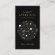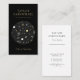 La tarjeta de visita negra del espacio con un círculo llenó de las estrellas, galaxias, constelaciones, lunas en blanco, gris plateados, y amarillo de oro pálido, como si miró a través de un telescopio para arriba el universo. La tarjeta de visita tiene fuentes elegantes en un color oro.