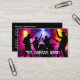Coolest band for hire business cards created with grunge style lettering that says Garage Band and graphic of colorful band silhouette in the background in this two side musician business card template.