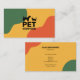 Una tarjeta de visita coloreada en verde, amarillo y rojo con silueta de un gato y un perro para todos los servicios mascotas como veterinario, caminante de perro, sentado en un gato, embarque de mascotas, comensal, comportamiento animal, etc.