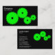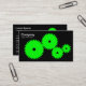 Una plantilla de tarjeta de visita con un motivo atractivo compuesto por una serie de ruedas de engranajes ajustados que crean un diseño moderno y limpio adecuado para muchos tipos de negocios. Nombre de la empresa y negocio en la parte delantera de la tarjeta. Nombre, dirección, telefonía, correo electrónico y dirección web al revés con una versión más pequeña del motivo principal.