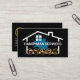 La cubierta negra tiene un marco de construcción con una bandeja de pintura azul. En el centro está el nombre de negocios "HANDYMAN SERVICES" junto a una serie de herramientas manuales de oro cerca de la base. Al dorso, los detalles de la tarjeta se encuentran a la izquierda con el logotipo de las herramientas de mano-casa de oro que puede usar, colocado en la parte superior. A esto le sigue su prestigioso nombre, detalles de contacto y una opción de slogan para publicitar sus servicios. Una gran carta para los negocios de construcción y construcción.