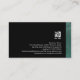 Esta sorprendente tarjeta profesional de gestión de talentos cuenta con un elegante gradiente de grunge turquesa abstracto en el borde inferior. Su nombre y título aparecen justo encima de este borde con estampado, sobre un fondo negro azabache. El mismo tema con patrones aparece en la parte posterior de la tarjeta, excepto que la banda está en el borde derecho. El logotipo de su empresa y los detalles de contacto aparecen en la sección negra de la tarjeta. Este diseño de tarjetas de visita es una primera impresión llamativa y es perfecto para grandes impactos, publicaciones, impresiones, literatura, artes literarias, escritura, habilidades artísticas, temas abstractos profesionales.