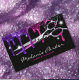 The card features a bold, dramatic border of dripping glitter gloss in a dazzling hot pink and deep purple ombre effect. The design is centered around a realistic chrome styling shears graphic, which reflects the dripping colors and is surrounded by sparkling starlight accents against the rich black background.
