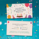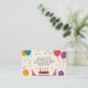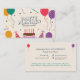 Una tarjeta de presentación de organizador de fiestas decorada con un pastel de cumpleaños, globos coloridos, sombreros de fiesta y confeti. Perfecta para tarjetas de invitación o para organizadores de eventos como fiestas de cumpleaños para niños o adultos, lanzamientos de productos, baby shower, celebraciones familiares, aniversario de bodas, despedida de soltero, fiesta temática, etc. La información de contacto completa decorada está disponible en la parte posterior con una lista de servicios.