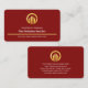 An all dark red cover features a gold line near the base of the card. It houses your prestigious name, the business name and a slogan tagline caption option. At the top is a faux gold global logo you can use.