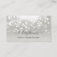 El diseño moderno de moda presenta un fondo gris plateado con una ráfaga de luces blancas de bokeh en la parte superior. Agregue dos líneas de texto personalizado al frente, con su nombre o nombre de negocio en escritura manuscrita de moda, y personalizar la parte posterior con sus detalles de contacto completos.