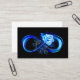 Luminous infinity symbol with glowing, beautiful, lushly blooming rose made of blue flames on black background.