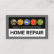 A black and white layered cover is encapsulated by a grey rectangular border frame. Over at the top lies an array of gold handyman icons. The gold icons can represent some of the services that you offer e.g. the drill-measuring tape can represent home repairs-renovation etc. Underneath all this is a slogan caption option; You can change it to suit your own service needs. The business name "HOME REPAIR" is at the base of the card; Once again, change it accordingly.