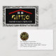 Design features a black rectangular cover encapsulated by a white frame set against a stone pebbled layer. Underneath the red rooftop with windows is an array of gold handyman tools. The business name (which you can change) is near the base of the card.