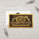 A timber wood layer is encapsulated by a faux gold rectangular frame. At the center is a gold building frame with a set of gold handyman tools. Just beneath this is your business name in faux gold followed by a slogan caption which you can change.