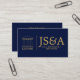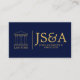 Make a powerful impression with this elegant law firm design featuring a gold Three Columns of Justice logo on a rich dark blue background. The front highlights your law firm name, bold monogram initials, and professional branding—while the back displays your employee name, title, contact details, and website in matching gold text. Every element, including colors and text, is fully customizable, making it perfect for attorneys, legal consultants, and professional law offices seeking a refined, trustworthy brand image.