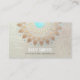 Este exótico ilustracion artístico de flores de loto tiene una elegante fusión de época vintage, moderna y nueva. El medallón de rosette de imitación de la hoja de oro inspirado en Mandala se acentúa perfectamente con el fondo de imagen digital de color beige oscuro del Relieve metalizado. Centro azul turquesa. Tapa de tela de lino fino beige.*Por favor, tenga en cuenta que las superficies de Relieve metalizado dorado, cepillado y lino son imágenes digitales - no lo real. Una tarjeta de visita única y versátil, ideal para los amantes de las artes curativas, los diseñadores, la belleza, la moda o los bienes y servicios de consumo basados en la naturaleza.