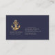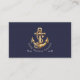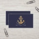 Gold rope wraps around a gold toned anchor on this pinstriped navy blue business card. Text is customizable.