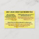 Gospel cards for the purpose of Evangelizing. Lovingly spread the Word of God and share the Gospel of Jesus Christ with others. The Bible verses on the card are from the King James Version.