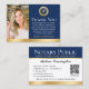 Expresar gratitud a los clientes con estas tarjetas de visita de agradecimiento personalizadas. Una manera perfecta de mostrar su aprecio e invitar a futuras colaboraciones. Esta plantilla de diseño muestra su foto, junto con una pluma de plumas en un precinto, o simplemente reemplácelo con su logotipo. En la parte posterior se incluye un código QR, los clientes motivadores pueden conectarse a un sitio de revisión y dejar comentarios. Ideal para notario público, agente de firma de préstamos, notario certificado de entrega de confianza, CNTDA, notario móvil, servicio de apostilla u otra profesión legal. Colores impresos: azul oscuro marino y blanco, con elementos de color dorado. Ver la colección en línea para más ideas y suministros de productos populares, diseñados para notarios!