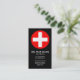 Una elegante plantilla de tarjeta de visita con un gran motivo más signo. Información principal de la empresa en la parte delantera, con nombre y contacto personal en la parte posterior.