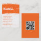 ¡El estilo anaranjado caliente del grunge hace una declaración! Consiga su fanfarronería encendido con esta tarjeta de visita elegante del código de QR. Substituya el CÓDIGO de QR en la parte posterior por sus el propio. Cree sus los propios gratis en la reserva de http://qrcode.kaywa.com a su ordenador y cargue a la parte posterior de esta tarjeta. Complete sus detalles e interruptor personales hacia fuera el código del qr para hacer establecimiento de una red simple y rápido. Cualquier persona con un teléfono y un lector elegantes del qr puede explorar su tarjeta de visita y en solamente segundos usted ha compartido su Info. Texto, URLS y porciones más.